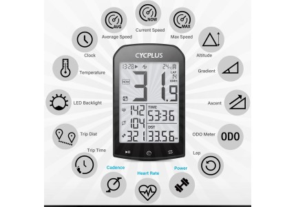 Ciclocomputerul CYCPLUS M1 impresionează la prima vedere prin afișajul său foarte ușor de citit și forma sa modernă.