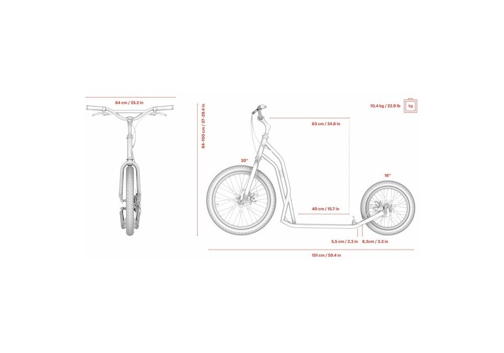 Ușoară și simplu de gestionat pe drum, când vânează Pokemon sau într-o excursie de o zi și aproape indestructibilă. Anvelopele umflate cu aer zboară literalmente peste pavaj și datorită roții mari din față o fac redutabilă pe asfalt. Numiți-l „generator de experiență”. Poate transporta în siguranță chiar și o sută de kilograme, doar în cazul în care întâlnești un mamut în parc și trebuie să-l dai înapoi la Muzeul Național.